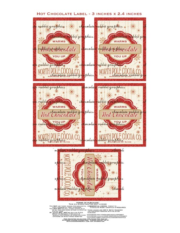 Printable Hot Cocoa Chocolate Labels Digital Download Vintage Style Christmas Clip Art Image Tag ...
