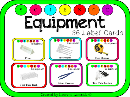 Science equipment with labels