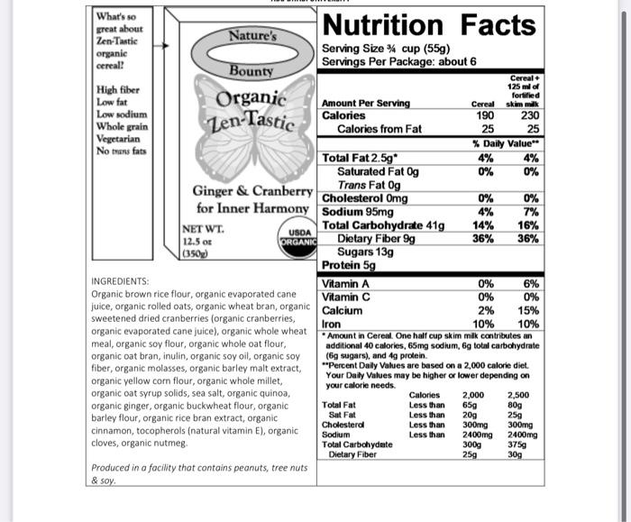 Breakfast cereal nutrition labels