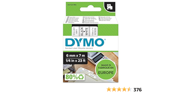 DYMO High-Performance Permanent Self-Adhesive D1 Polyester Tape for LabelManager Label Makers, White Print on Black, 1/2-inch x 23-foot, 1 cartridge